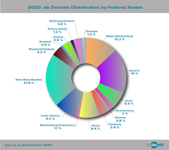 Regional distribution of .de across Germany – Significant increase in .de domain in 2020